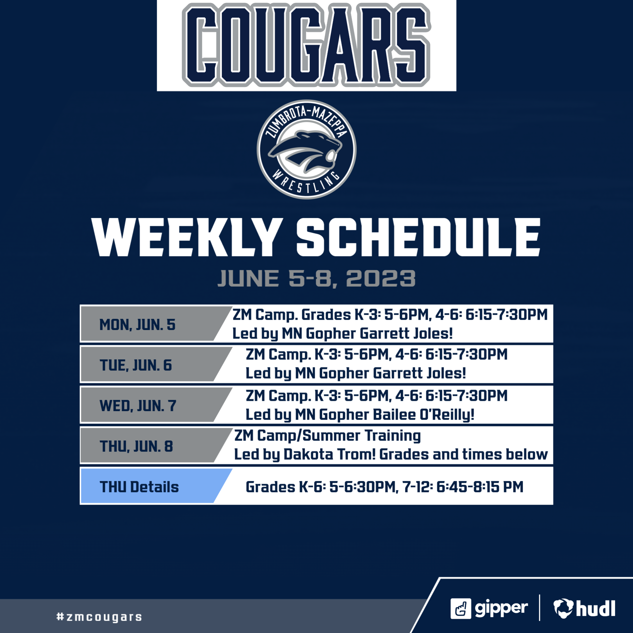 We are looking forward to year #2 of streaming ZM Wrestling for our families, friends, and fans to enjoy live ZM Wrestling from the couch if you can’t make it to the gym. Please download the attached PDF file for information on how to donate or sponsor ZM Wrestling! GO COUGARS!